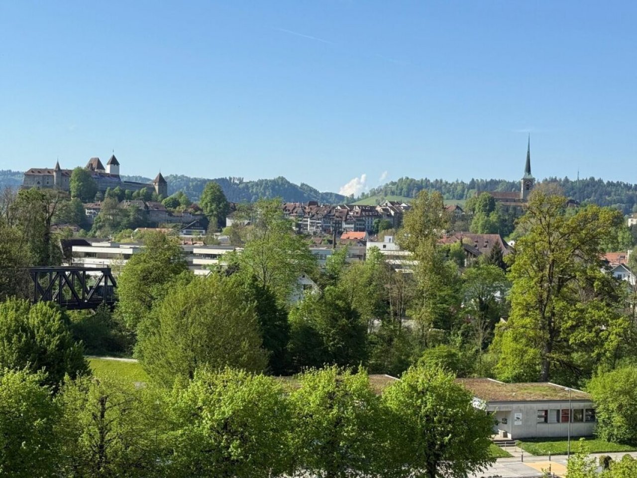 Sonniger Balkon mit schönem Blick auf die Altstadt und das historische Schloss Burgdorf - der ideale Ort, um nach einem langen Tag zu entspannen.…