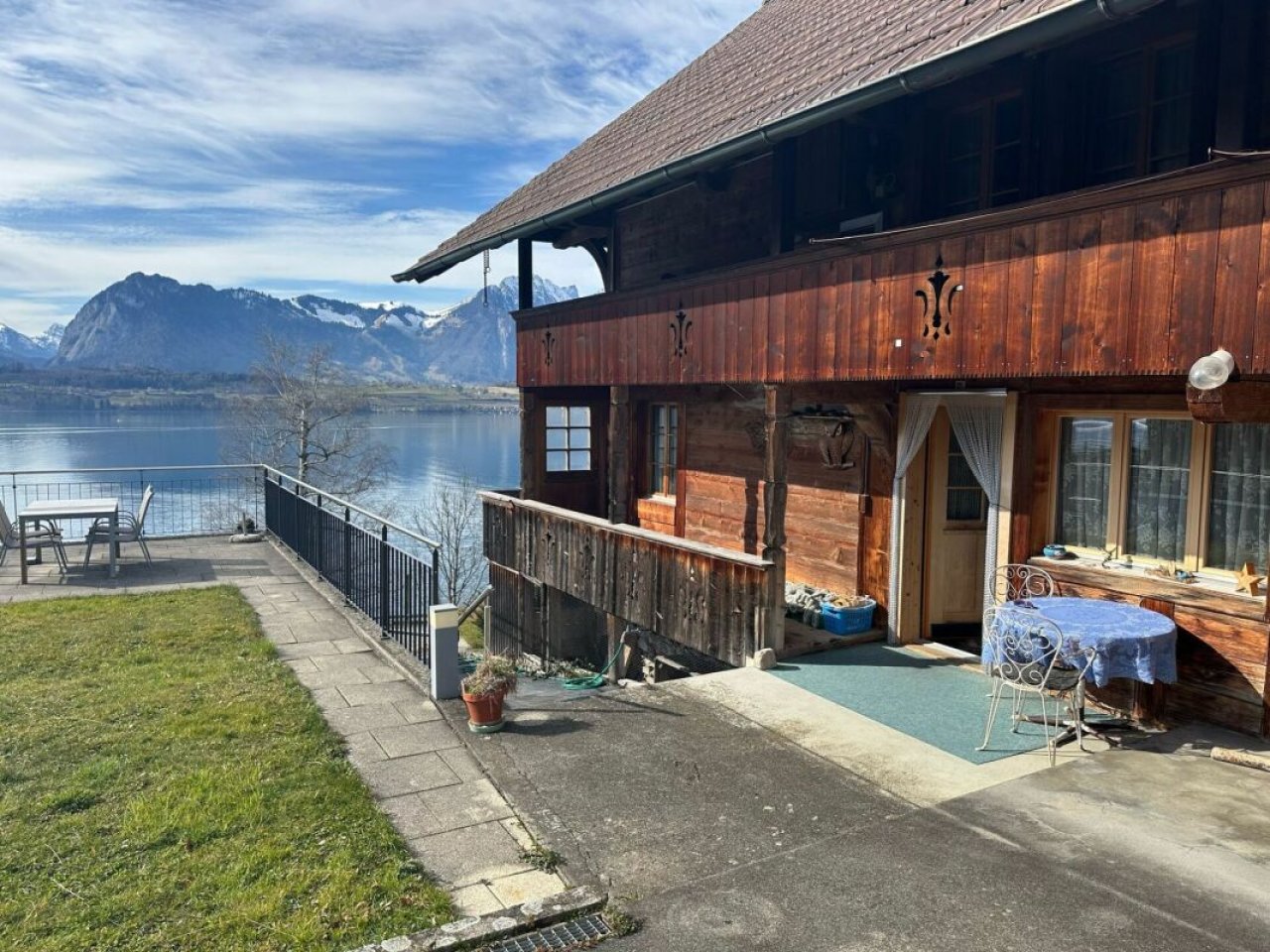 Ob beim Frühstück auf der Terrasse mit Blick auf den Thunersee oder beim Entspannen im Garten - diese Liegenschaft bietet Ihnen genau das, was Sie sich schon immer gewünscht haben. Der Innenbereich besticht durch 2-3 Schlafzimmer, eine funktionale Küche, ein Badezimmer mit Dusche und Badewanne sowie ein einladendes Wohnzimmer mit Schwedenofen, das zu gemütlichen Stunden einlädt. Die Zentralheizung fehlt, was dem historischen Charme des Hauses noch mehr Ausdruck verleiht.